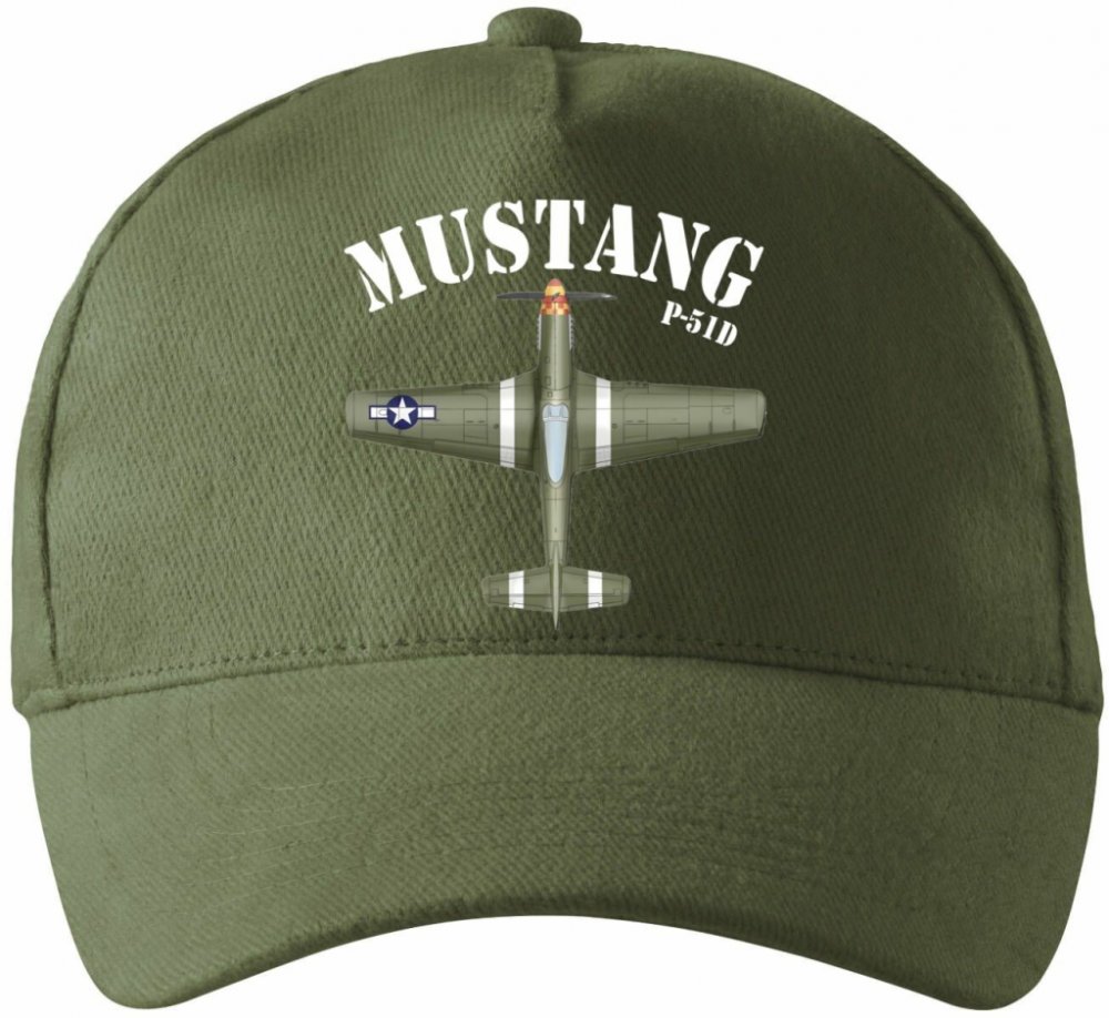 Mustang P-51, V1. Tričko, mikina, kšiltovka, zástěra, tílko, hrnek, půllitr, plechový hrnek, polštář