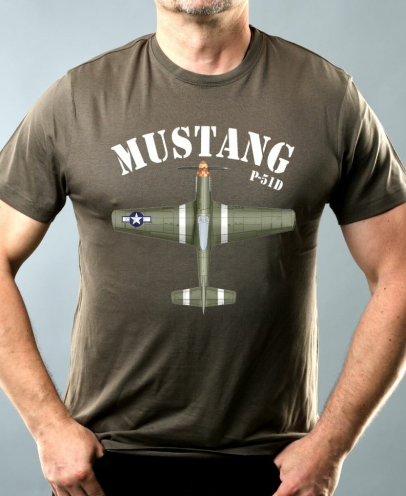 Mustang P-51, V1. Tričko, mikina, kšiltovka, zástěra, tílko, hrnek, půllitr, plechový hrnek, polštář