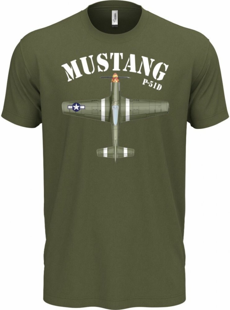 Mustang P-51, V1. Tričko, mikina, kšiltovka, zástěra, tílko, hrnek, půllitr, plechový hrnek, polštář