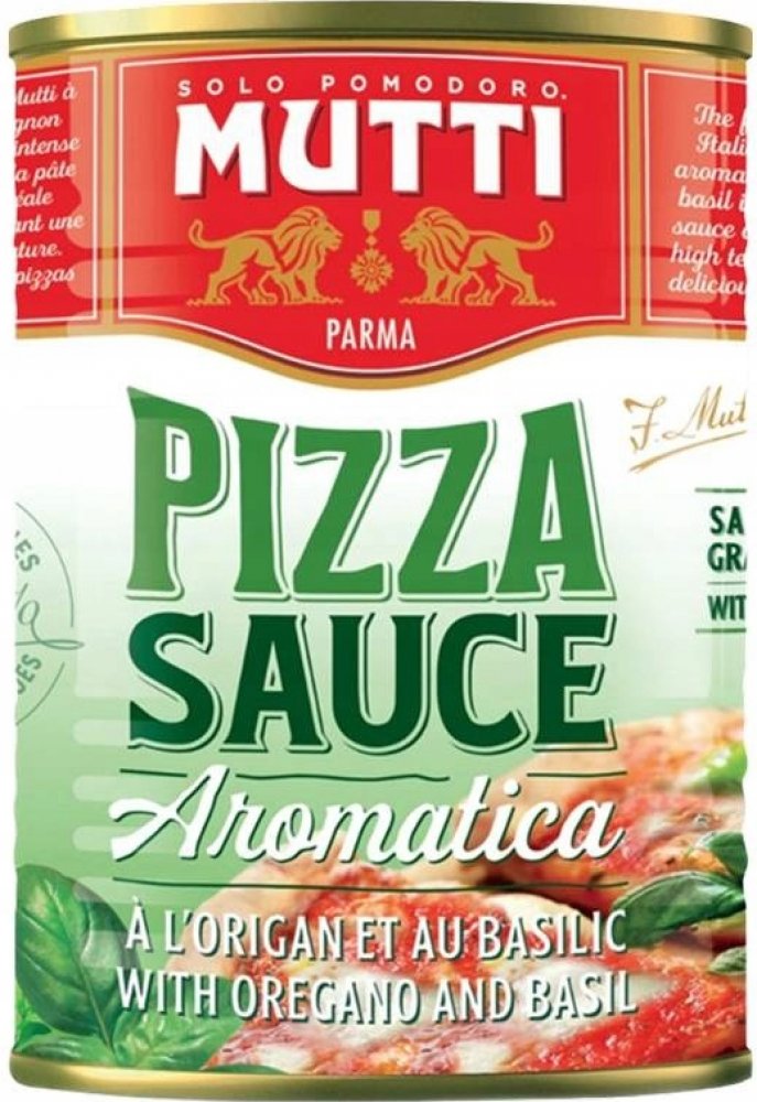 ZÁKONNÝ NÁZEV POTRAVINYHotová aromatizovaná omáčka na pizzuSLOŽENÍRajčata (99,2%), sůl, bazalka (0,05%), oregano (0,04%), cibule (0,03%), přírodní aroma.ALERGENYNeuvádí seVÝŽIVOVÉ ÚDAJE/JEDNOTKAgramVÝŽIVOVÉ ÚDAJE/PORCENutriční hodnoty na 100 g: Energetická hodnota 169 kJ /40 kcal - Tuky 0,2 g - z toho nasycené mastné kyseliny 0,1 g - Sacharidy 6,6 g - z toho cukry 4,8 g - Bílkoviny 1,8 g - Sůl 0,85 gHMOTNOST/OBJEM400gPŮVODItálieVÝROBCEMUTTI S.p.A. Via Traversetolo, 28 43022 Montechiarugolo (Parma) - Itálie