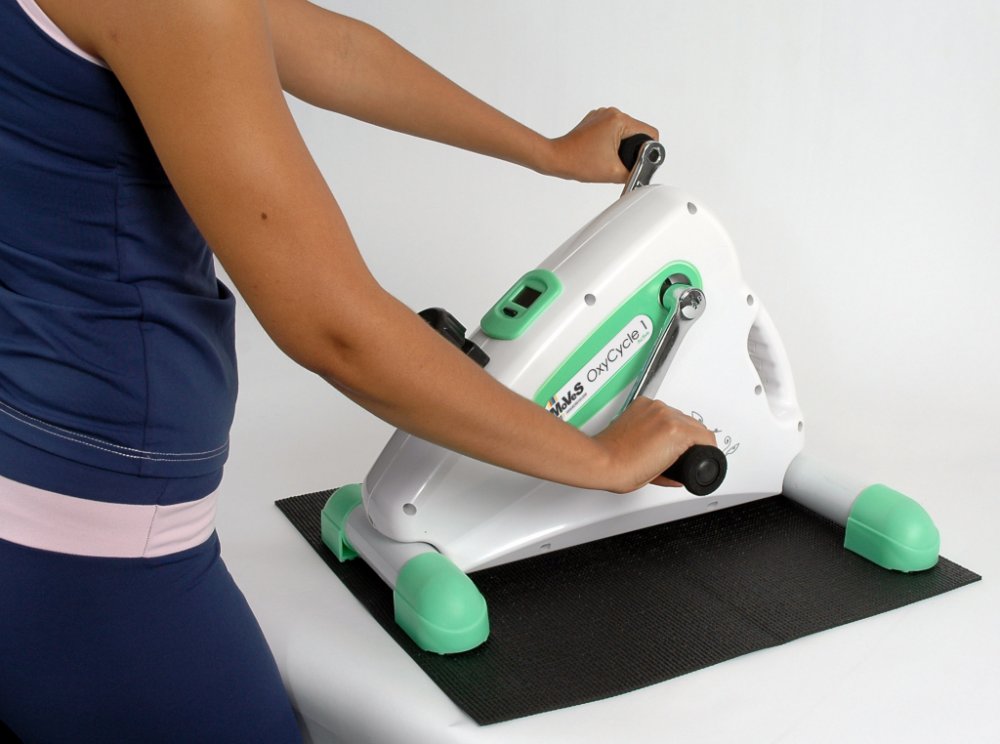 Oxycycle 1 je kompaktní aktivní trenažér pro domácí použití, ideální pro posilování horních i dolních končetin. Umožňuje nastavení odporu, což z něj činí perfektní pomůcku pro postupné posilování paží a nohou.