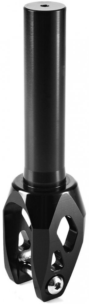 Jednodílná lehká bezzávitová černá hliníková přední vidlice na freestylovou koloběžku určená pro SCS.