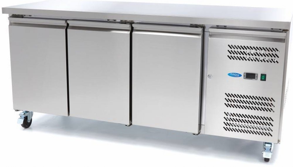 V této pultové mrazničce je mrazicí část kombinována s pracovní deskou. Je ideální pro zmrazování zeleniny, ryb a zmrzliny. S touto luxusní pultovou mrazničkou vytvoříte hygienické pracoviště pro přípravu pokrmů a jídel. Pultový mrazák lze navíc vybavit podle vlastních představ, protože si můžete objednat praktické sady zásuvek nebo přídavné police. Upozorňujeme, že zásuvky nejsou součástí standardní výbavy. Na pravé straně pultové mrazničky byl zabudován extra výkonný mrazicí systém s ventilátorem pro optimální zmrazení produktů. Se třemi dveřmi Tato profesionální pultová mraznička má troje robustní dveře z nerezové oceli s výškově nastavitelnou policí za každými dveřmi. K nastavení teploty v rozmezí -10 až -20 ºC použijte praktický digitální regulátor teploty DIXELL. Pultová mraznička je také vybavena funkcí automatického odmrazování. Na třech stranách je výparník s pěnou a chladivo použité v této mrazničce je R290 a neobsahuje freony. Snadné čištění Maximální okolní teplota, při které tato profesionální mraznička optimálně pracuje, je 32 ºC. Kompaktní ochranná izolace, kterou má mraznička k dispozici, je 6 cm. Vnitřní i vnější část je vyrobena z nerezové oceli, díky čemuž je čištění snadné. Díky nerezovým povrchům se nečistoty a bakterie šíří co nejméně. Mrazničku a pracovní desku můžete čistit vlhkým hadříkem a jemným čisticím prostředkem. Před použitím vše otřete do sucha měkkým hadříkem. Krásný pracovní stůl s luxusním designem Konstrukce z nerezové oceli s plně nerezovou pracovní deskou Extra výkonný mrazicí systém na pravé straně třídveřové robustní dveře z nerezové oceli o třech rozměrech Vybaveno nastavitelnými policemi (jedna na každé dveře) Digitální regulace teploty (DIXELL) Mrazicí systém s ventilátorem Pěnový výparník na 3 stranách Automatické odmrazování Vnitřní a vnější povrch z nerezové oceli AISI 304 Kompresor Zanussi Chladivo R290 / bez freonu Maximální teplota okolí 32? Kompaktní ochranná izolace 60 mm Teplota: -10° až -20° Celsia Bez zásuvek Čistá hmotnost: 136 kg Vnitřní rozměry: Šířka 123 x hloubka 58 x výška 58,9 cm Vnější rozměry: Š179,5 x D70 x V86cm Objem: 465 l 230V/50Hz/1fáze 430W