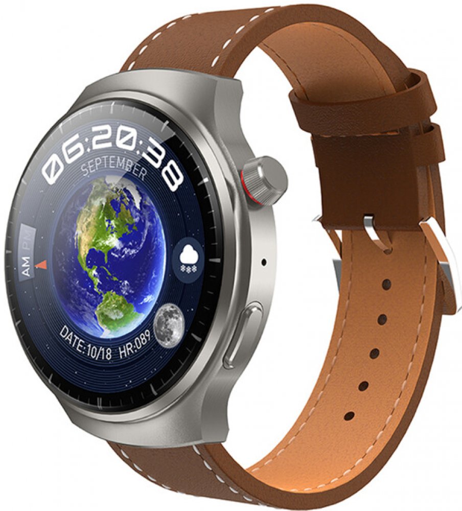 Chytré hodinky s 1,45palcovým kulatým dotykovým displejem, přizpůsobením ciferníků, monitorem srdeční frekvence, tlaku a okysličení krve, multisportovními režimy, bezdrátovým nabíjením, funkcí peněženky a NFC, a navíc s vestavěným reproduktorem a mikrofonem pro Bluetooth hovory.