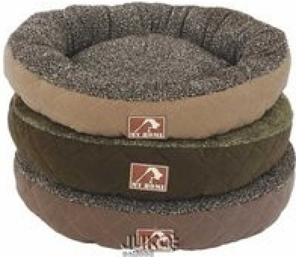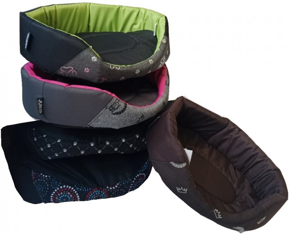 Látkový pelíšek pro psy ve tvaru oválu s vyjímatelnou podložkou.