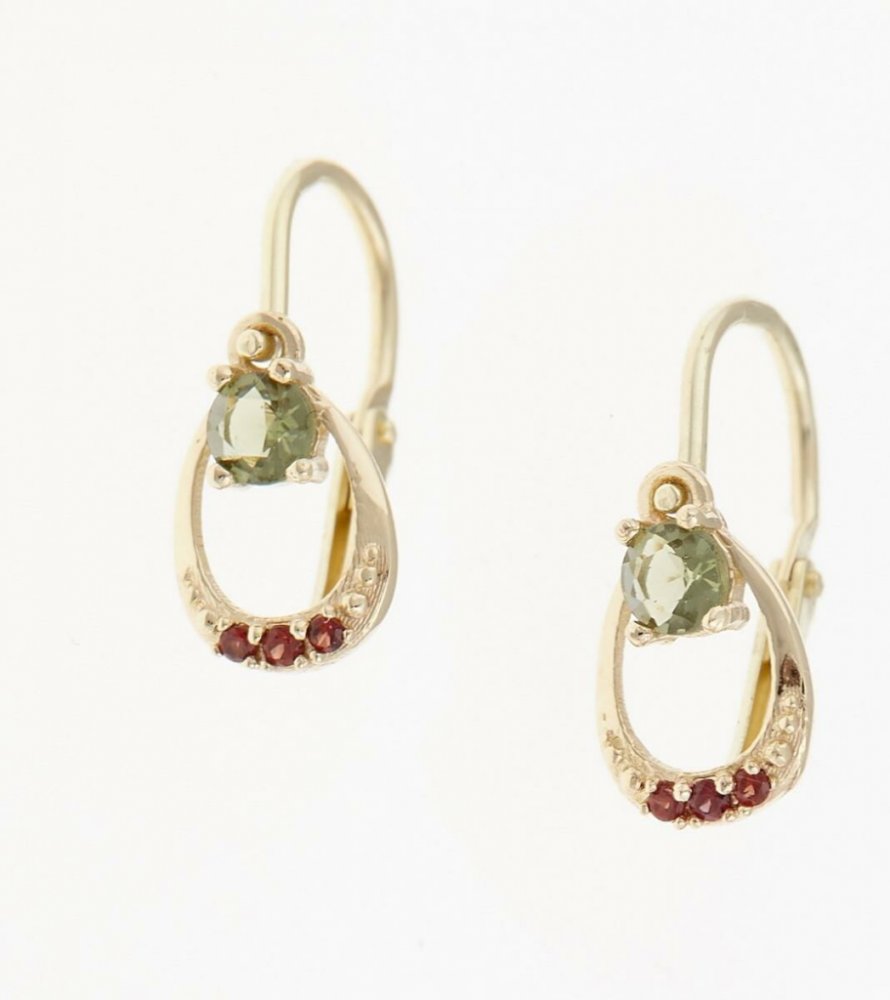 My Moldavite Zlaté dětské náušnice s vltavíny a granáty 07-5