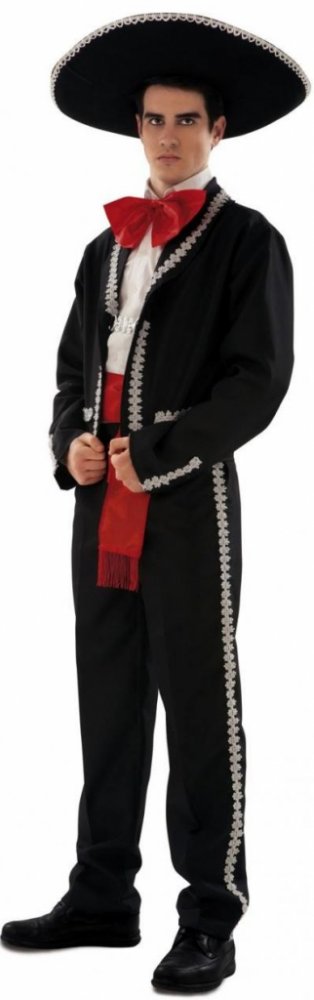 Černý žaket je lemovaný stříbrnou krajkovou stuhou. Stejná stuha je použita na kapsy a manžety. Na hrudníku je žaket spojen ozdobnou stříbrnou přezkou. Černé dlouhé kalhoty mají lampas také z krajkové stříbrné stuhy. Kostým je doplněn červenou šerpou s třásněmi a červeným motýlkem.