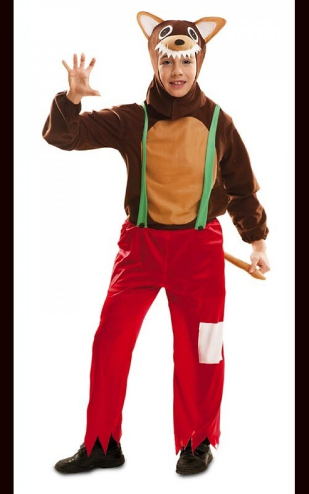 Hnědá košile s dlouhými rukávy má na hrudníku krémový ovál. Červené kalhoty jsou na spodním lemu cípaté. Na levém koleni je bílý čtverec. Vzadu je přišit ocas. Kalhoty jsou doplněny zelenými kšandami. Hnědá kapuce se zapíná pod krkem na suchý zip a je zdobena vlčíma ušima, čumákem se zubama a očima.