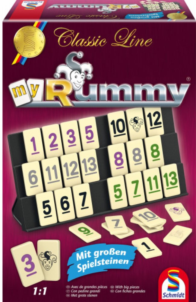 Zábava pro celou rodinu s rodinnou hrou MyRummy od Schmidt Spiele v řadě Classic LineVe hře MyRummy se hráči snaží šikovně umisťovat a odstraňovat své kameny, dokud žádný nezbude. Vyhrává hráč, který jako první umístí všechny své destičky. Díky jednoduchému hernímu mechanismu je snadné začít. Atraktivní kombinace strategie a štěstí ve hře MYRUMMY zaručuje dlouhotrvající zábavu pro celou rodinu! Ed...