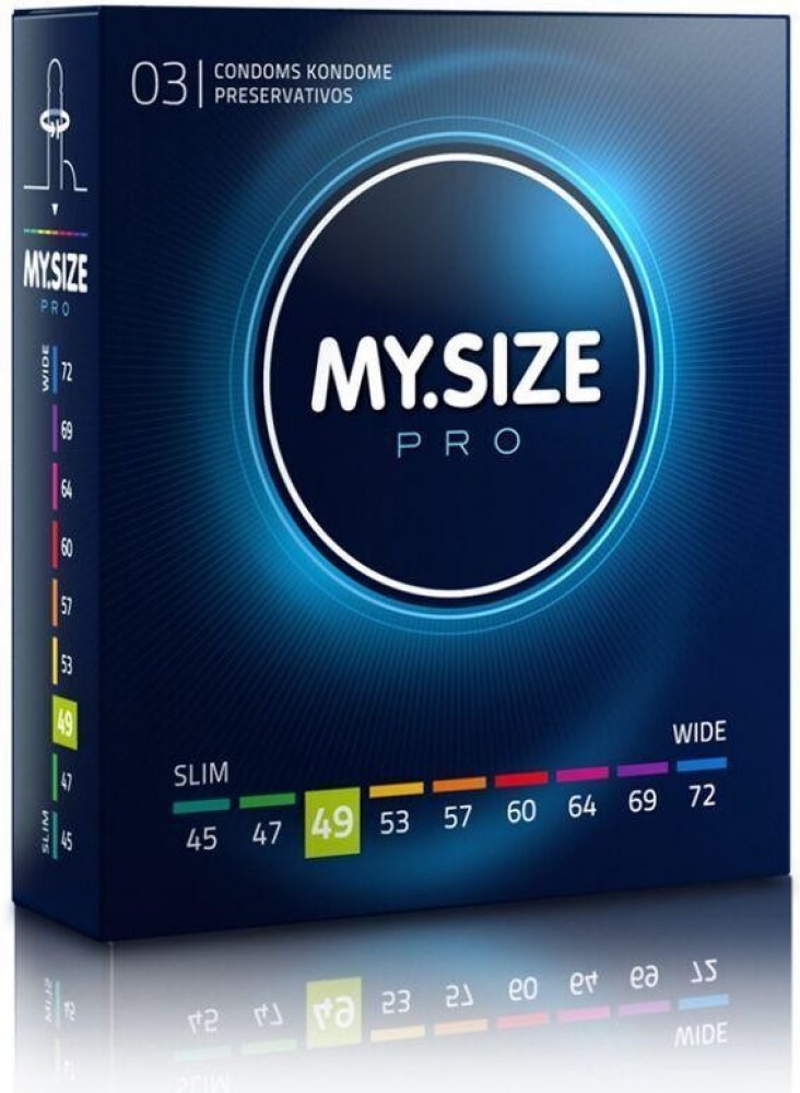 - Kondomy MY s tloušťkou stěny pouhých 0,05 - 0,06 mm. SIZE PRO jsou mnohem tenčí a nabízejí ultrasenzitivní přirozený pocit.
