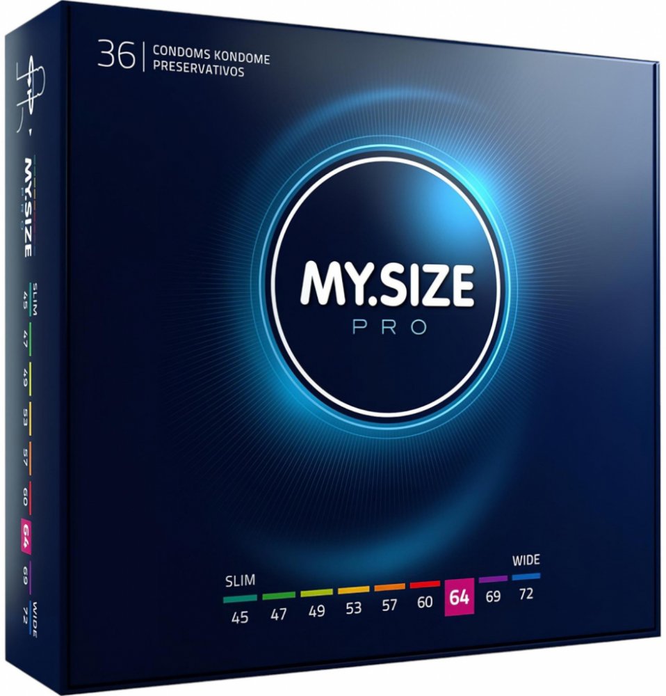 MY.SIZE Pro 64 mm kondomy byly vytvořeny pro dokonalé přizpůsobení a přirozený pocit. Extra tenký materiál Vytex latex s nižším obsahem alergenů je veganský a udržitelně vyrobený, aby nabízel potěšení i bezpečí zároveň. Proč si ho zamilujete? Skvělé přizpůsobení díky nominální šířce 64 mm. Extra tenká stěna (0,05 mm) pro intenzivní a přirozený pocit. Vytex latex: 90 % méně latexových proteinů, což snižuje riziko alergických reakcí. Lubrikovaný povrch a zakončení s rezervoárem pro pohodlné použití. Snadno otevíratelné balení pro jednoduchost. Veganský a udržitelně vyrobený, přátelský k životnímu prostředí. Na co si dát pozor: Skladujte na chladném a suchém místě, mimo přímé sluneční světlo. Pro jedno použití, použijte nový kondom pro každý akt. Používejte pouze lubrikant na vodní bázi pro zachování integrity materiálu. Jak používat Opatrně otevřete kondom, aby nedošlo k poškození. Umístěte kondom na ztopořený penis ve správném směru. Stiskněte rezervoár, aby se uvolnil vzduch, a srolujte kondom až k základně penisu. Po použití kondom bezpečně zlikvidujte. Obsah balení 36 kusů MY.SIZE Pro 64 mm kondomy Vlastnosti produktu Délka: 223 mm Nominální šířka: 64 mm Tloušťka stěny: 0,05 mm Barva: Průhledná Materiál: Vytex latex (přírodní guma latex) Lubrikovaný design s rezervoárem Veganský a udržitelně vyrobený