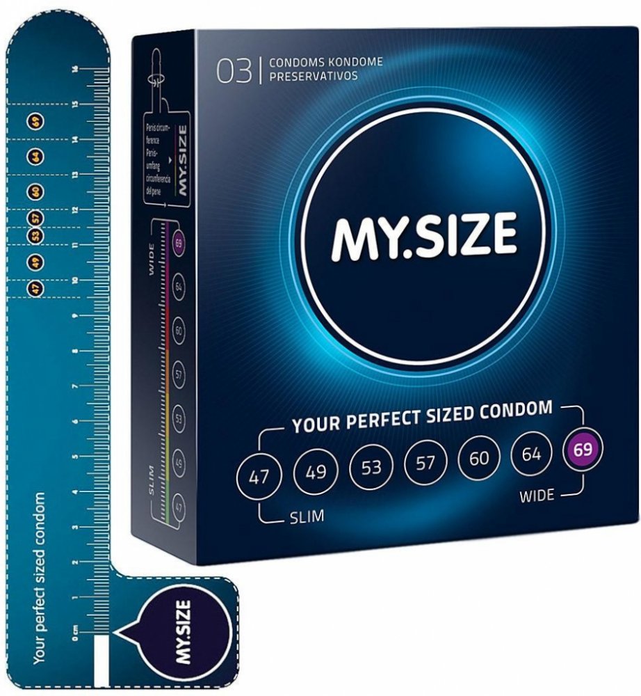 MY.SIZE PRO je jedinou značkou na trhu, která nabízí kondomy v tolika velikostech. V nabídce jsou velikosti 45, 47, 49, 53, 57, 60, 64, 69 a 72 mm.