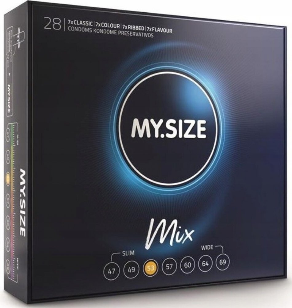 My.Size je značka kondomů, která se dodává v sedmi různých velikostech. Výhody jsou zřejmé: vyšší bezpečnost a více pocitů při sexu. Kondomy My.Size zajišťují optimální padnutí a pohodlí tím, že zabraňují nepříjemnému pohybu kondomu, poskytují ochranu proti nechtěnému otěhotnění a proti pohlavně přenosným chorobám.
