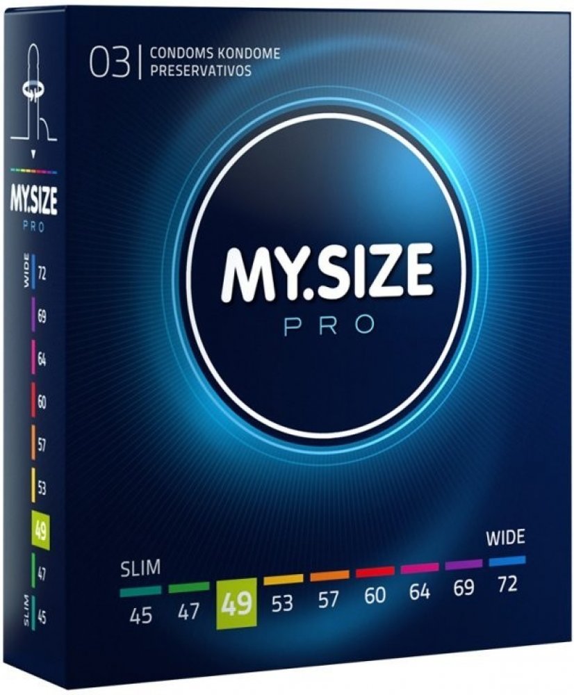 Moje velikost pro je kondom, který se perfektně hodí ke všem lidem, bez ohledu na jejich velikost a nabízí perfektní individuální fit, s vynikající kvalitou. Dnes My.size reaguje na touhu a touhu po bezpečnějším a citlivějším sexuálním životě ve více než dvaceti zemích po celém světě. Protože je to jediná značka na světě, která svým uživatelům nabízí širokou škálu šířky, 45 - 47 - 49 - 57 - 60 - 69 - 72. produkt s nízkým alergenem díky použití čistého VYTEX, latexu, který obsahuje o 90% méně latexových proteinů než běžný latex, což vede k produktu, který je téměř úplně alergenní, bez proteinů a kontaminantů. podstatné snížení obvyklého zápachu kondomu díky použití VYTEX, latexu s vysokou čistotou. S tloušťkou stěny pouze 0,05 - 0,06 mm jsou kondomy my.size mnohem tenčí a nabízejí velmi citlivý přirozený pocit. Naše vlastní kondomy snižují aplikované stres při zakládání kondomu, nejčastější příčinu rozbití kondomu. Jsou osvobozeni od jakéhokoli produktu a neobsahují žádné zvířecí složky ani materiály. Speciální těsnicí fólie našich kondomů je velmi tenká a tenká, proto je velmi snadné otevřít. Na naše veganské kondomy se vyrábějí pod certifikovaným a udržitelným procesem daleko nad standardní normou. Všechny produkty přenášejí štítek CE a aplikují směrnici o zdravotnickém zařízení EU, 93/42/EEC.