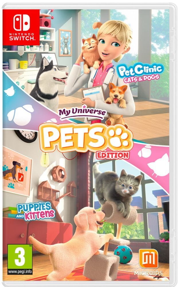 My Universe – Pets Edition obsahuje dvě oblíbené hry ze série My Universe – Pet Clinic: Cats & Dogs a Puppies and Kittens. My Universe - Pet Clinic: Cats & Dogs Splňte si sen a otevřete si vlastní veterinární praxi! Vyberte si postavu, přizpůsobte ji obrazu svému a přispěchejte na pomoc svým čtyřnohým pacientům. Ať už půjde o domácího mazlíčka, který je zraněný, trpí horečkou nebo odmítá jíst, je pouze na vás důkladně ho vyšetřit a rozhodnout o tom, jakou péči právě potřebuje. Použijte rentgen nebo stetoskop, obvažte mu ránu s pomocí obvazu nebo pro něj připravte nezbytnou medicínu. Rozšiřujte a vylepšujte svou praxi, abyste mohli domácím mazlíčkům nabídnout služby té nejvyšší úrovně, odemykejte nové léčebné metody, najímejte další zaměstnance, zkrášlujte svou kliniku tak, aby odrážela váš jedinečný vkus, naslouchejte svým zvířecím pacientům, mazlete se s nimi, navažte s nimi skutečné pouto a staňte se nejuznávanějším veterinářem široko daleko! My Universe - Puppies and Kittens Pořiďte si roztomilé štěňátko nebo koťátko a pečujte o něj s pomocí nejrůznějších miniher a aktivit, jako by bylo skutečné! Mazlete se s ním, krmte ho, hrajte si spolu nebo ho vezměte na procházku. Pomozte mu růst, pečujte o něj a učte ho správnému vychování, aniž byste přitom zanedbávali jeho potřebu přitulit se k vám a nechat se podrbat. Vybírejte z dvaceti roztomilých plemen pejsků a kočiček patřících k nejoblíbenějším na světě a nezapomeňte, že každé zvířátko je jedinečné a má svou vlastní osobnost. Abyste se mohli stát nejvěrnějšími přáteli, budete se mu muset naučit naslouchat a postarat se o to, aby se u vás cítilo jako v bavlnce.