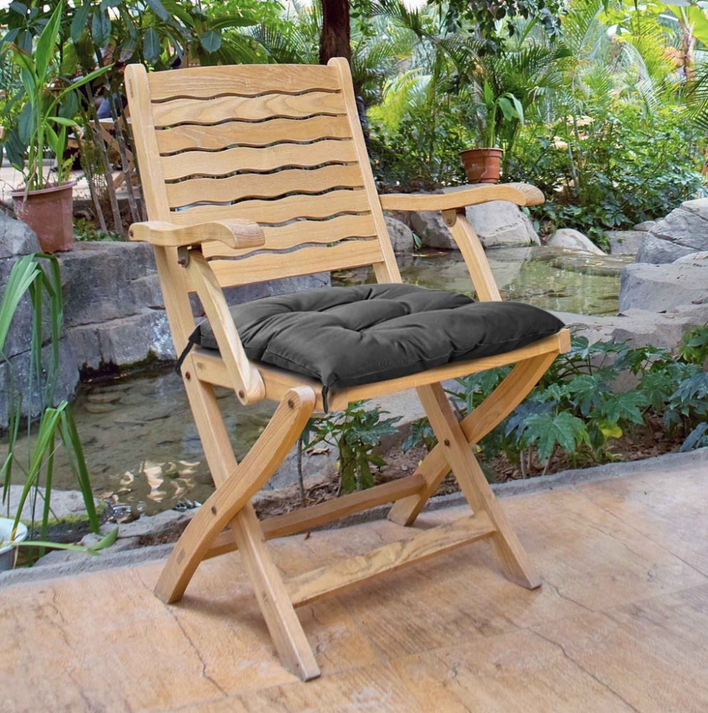 Voděodolná tkanina chrání před deštěm a vlhkostí, což zvyšuje její odolnost a usnadňuje udržování v čistotě. Polštář židle má správně dimenzovanou výplň, která zajišťuje pohodlí při sezení. Sedák je vybaven šňůrkami, které slouží k jeho přivázání k židli. Tím je zajištěno, že sedák zůstane na svém místě a během používání se nepohybuje.