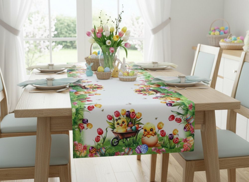 Mybesthome Velikonoční ubrus běhoun EASTERS CHICKS 60x120 cm