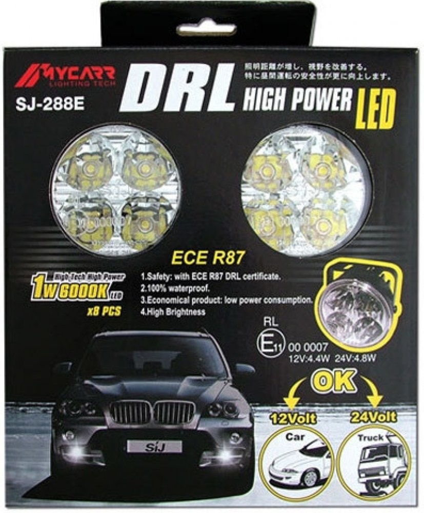 Špičková kulatá světla pro denní svícení ! Sada světel je doplněna modulem, který zajistí automatické rozsvícení po zapnutí zapalování a zhasnutí při zapnutí potkávacích světel vozidla. Homologace dle EHK/OSN č. 48 pod číslem E11 - 00 0007. Technické údaje: Spotřeba 2 x 4,4 W Napájecí napětí 12 nebo 24 V Zabudované speciální LED moduly s elektronickým řízením proudu Životnost po celou dobu provozu vozidla Automatické rozsvícení a vypnutí Robustní vodotěsné provedení Velice efektní bílé světlo s teplotou 6000K (jako xenony) Rozměry: průměr 70mm, hloubka 53 mm Použití světel pro denní svícení V souvislosti s novými legislativními podmínkami upravujícími provoz motorových vozidel a nařizujícími celodenní svícení je velice aktuální náhradní osvětlení vozidel určené výhradně pro osvětlení ve dne za nesnížené viditelnosti. Provedení a umístění světel pro denní svícení je dáno homologačním předpisem EHK/OSN č. 48, který předepisuje vyhláška č. 341/2002 Sb. a jejich používání se řídí zákonem č. 361/2000 Sb. o provozu na pozemních komunikacích pozměněným zákonem č. 411/2005 Sb. Světla pro denní svícení se vyznačují silně rozptýleným tokem světla, který netvoří kužel jako u běžných reflektorů. Rozptýlené světlo svým charakterem neoslňuje protijedoucí řidiče ani neosvětluje vozovku, ale v dostatečné míře zajišťuje zásadní podmínku bezpečného provozu "být viděn". Hlavním přínosem těchto přídavných světel je úspora energie, neboť při jejich používání nesvítí obrysová, potkávací ani koncová světla vozidla. Úsporu přinese také prodloužení životnosti žárovek či výbojek, kterou pocítí především řidiči vozidel s xenonovými světlomety, jejichž výbojky mají sice delší životnost než běžné žárovky, ale jejich výměna je výrazně nákladnější. Montáž světel pro denní svícení není přestavbou vozidla ani změnou technických údajů, a proto jejich umístění na vozidlo nepodléhá žádnému dodatečnému schvalování ani zápisu. Základní pravidla pro dodatečnou montáž světel pro denní svícení Na jedno vozidlo se montují dva kusy (jeden pár) světel Umísťují se ve vodorovné rovině ve výšce od 250 mm do 1500 mm na přední část vozidla Vzdálenost světel od bočního obrysu je max. 400 mm a vzájemně mezi světly min. 600 mm (u vozidel s šířkou menší než 1300 mm je povolena vzájemná vzdálenost 400 mm) Světla se rozsvítí automaticky po zapnutí zapalování (nastartování motoru) a zhasnou po jeho vypnutí Při rozsvícení obrysových světel musí světla pro denní svícení automaticky zhasnout