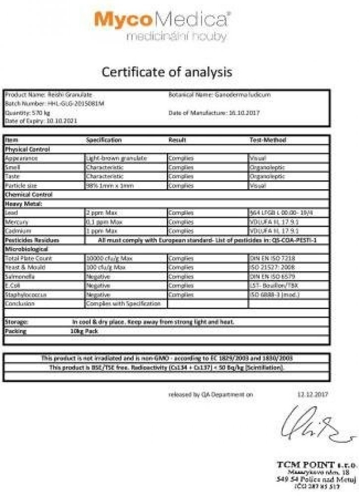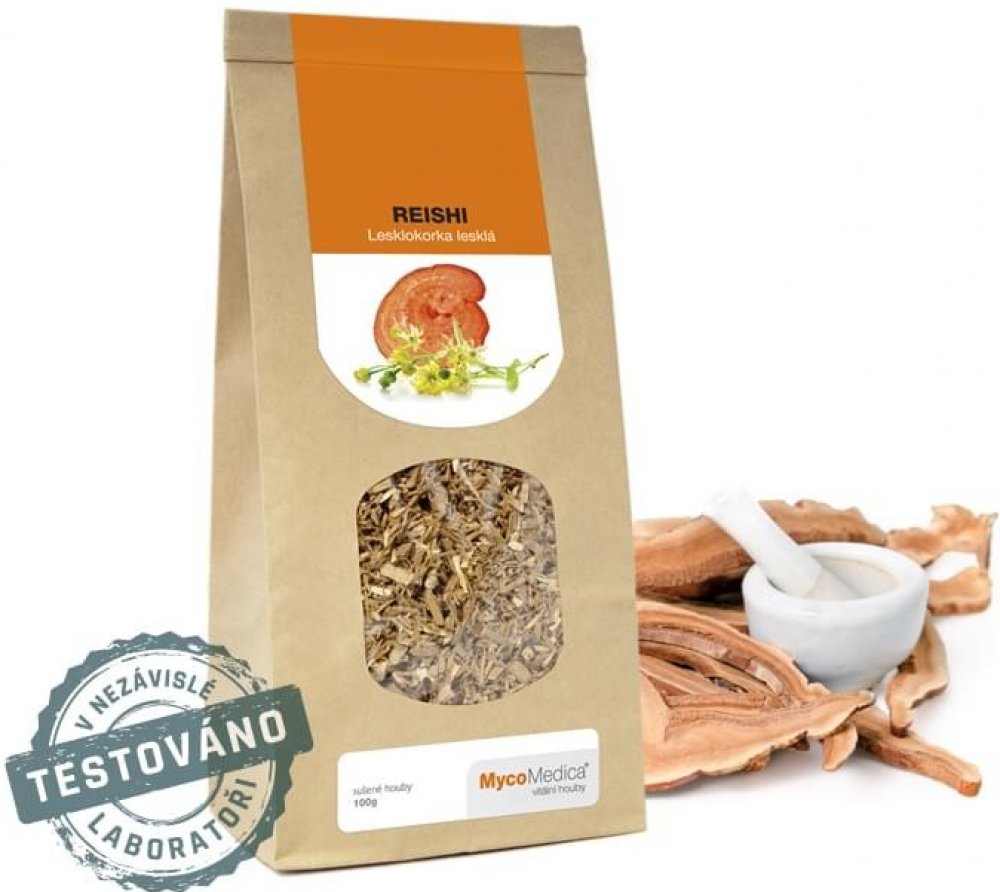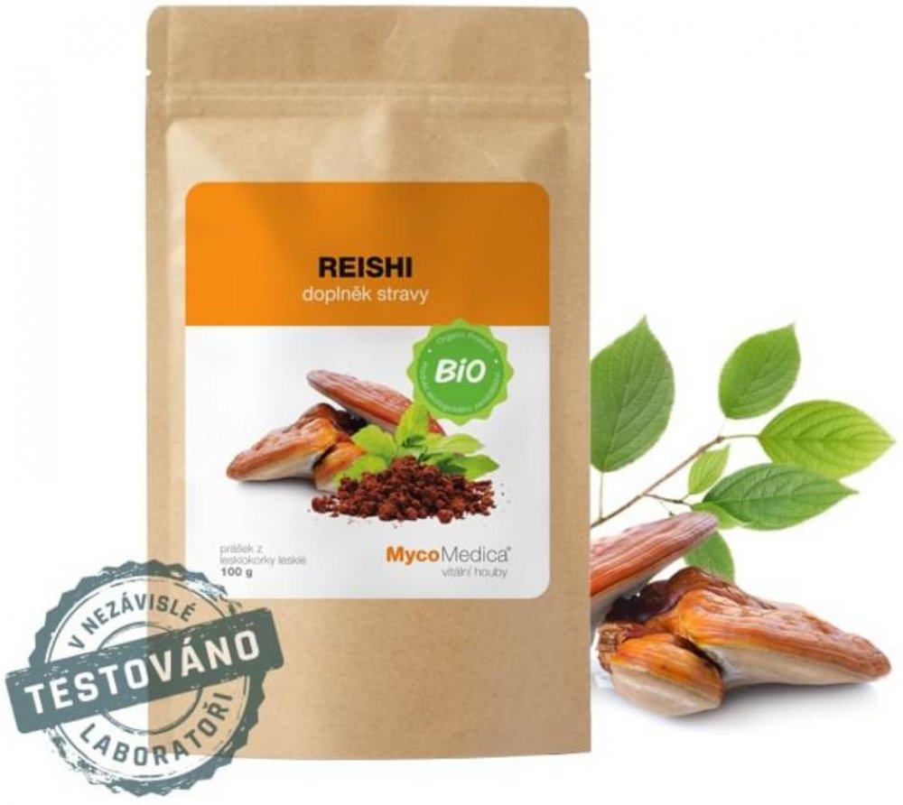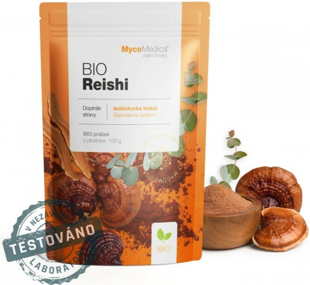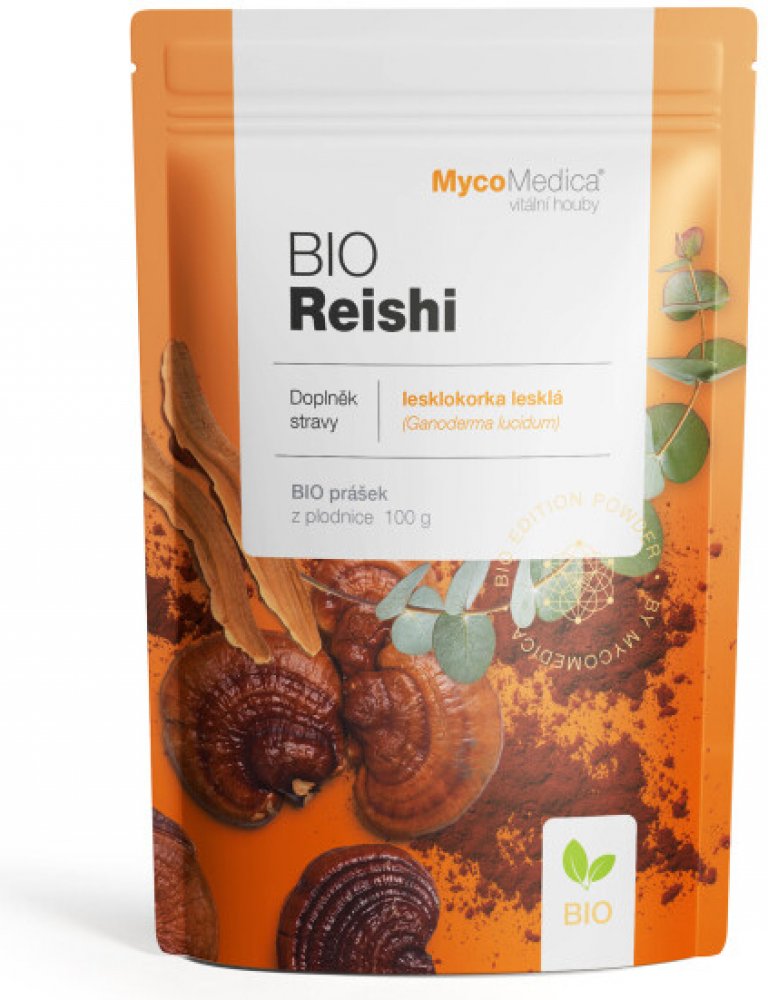 Obsah balení: 100g BIO prášku z plodnice Ganoderma lucidum (biomasa/powder)