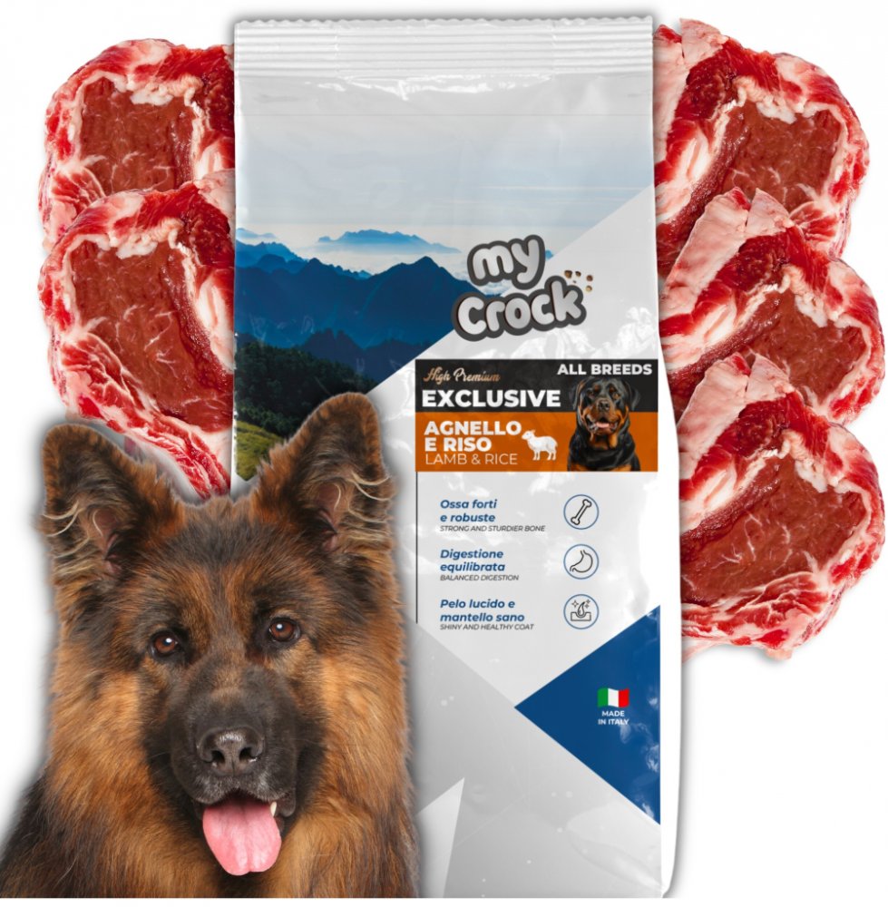 Suché Krmivo pro dospělého psa 15 kg Jehněčí Ryba Univerzální MyCrock⭐ KRMIVO – Jehněčí maso s rýží a luštěninami MyCrock
