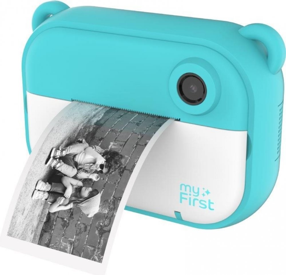 Dětský instantní fotoaparát 12 Mpx foto Okamžitý černobílý tisk Neomezený super levný tisk na termo papíru Žádné náplně Natáčení Full HD videa Selfie kamera Legrační efekty a rámečky MicroSD karta 4 GB je součástí balení USB propojení s počítačem