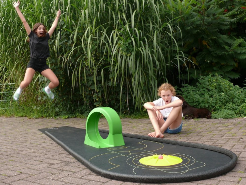 Dráha vyrovnává nerovnosti povrchu a nabízí optimální rychlost a výkon míče. Okolní lem zabraňuje odkutálení míčku.