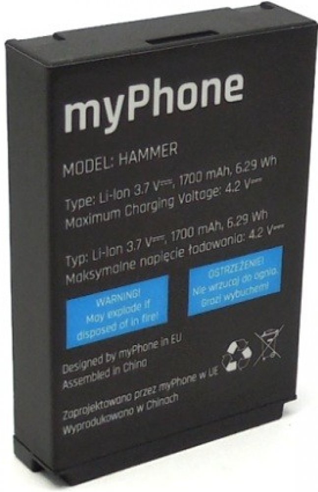 Baterie myPhone s kapacitou 1700mAh je pro mobilní telefony myPhone HAMMER 1. Baterie nemá paměťový efekt a je chráněna proti přebití, přepólování a přehřátí. Vlastnosti baterií Li-Ion: