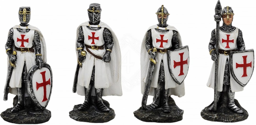 Tito rytíři svým vzhledem jasně odkazují na Řád templářů (Chudí rytíři Krista a Šalomounova chrámu), který byl založen roku 1119. Bílý plášť s červeným křížem byl jejich nezaměnitelným znakem, symbolizujícím čistotu a mučednictví. Všichni mají kroužkové brnění (hauberk) a hrncové přilby nebo přilby s nánosníkem, což odpovídá výstroji 12. a 13. století. S výškou 7,5 cm jsou tyto figurky větší než standardní 28mm miniatury, takže na stole budou působit jako dominantní hrdinové nebo detailní dekorace.