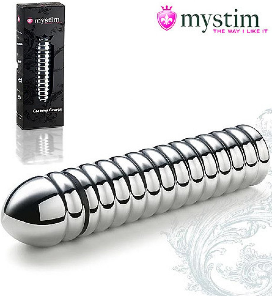 Mystim Groovey George je doplňující pomůcka k sadě elektrosexu Mystim Tension Lover. Jde o speciální elektrostimulační masivní dildo, které se dá napojit na zdroj Mystim. Dildo má velké rozměry a je vhodné k dráždění vagíny i análu. Intenzita výbojů je jemná, intenzivní a můžete jí regulovat. Dildo je vyrobené z ručně leštěného aluminia, které můžete zahřát nebo zchladit na požadovanou teplotu. Di...