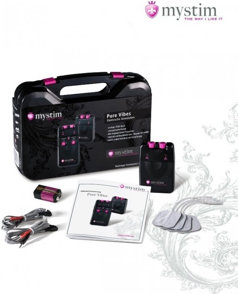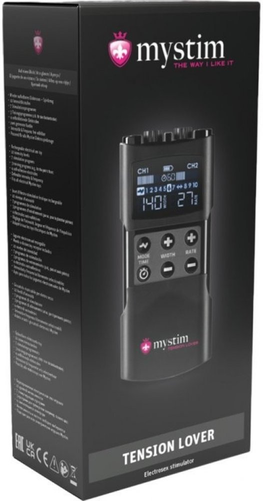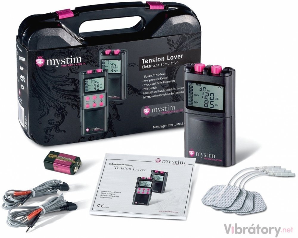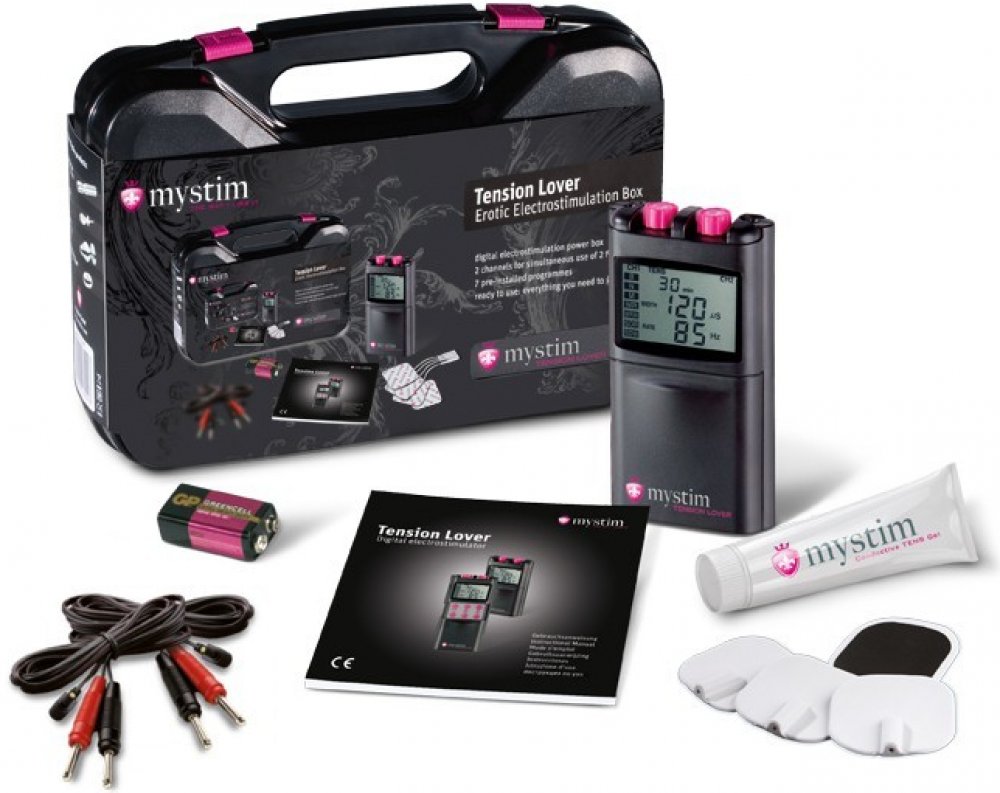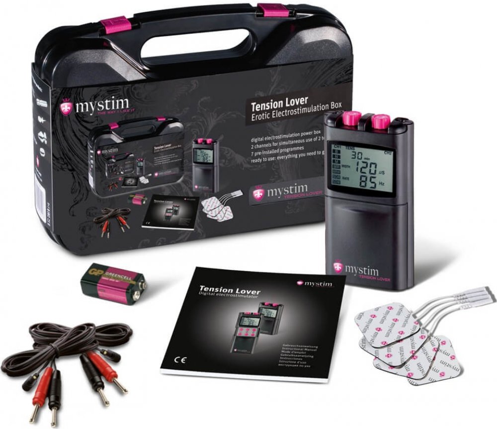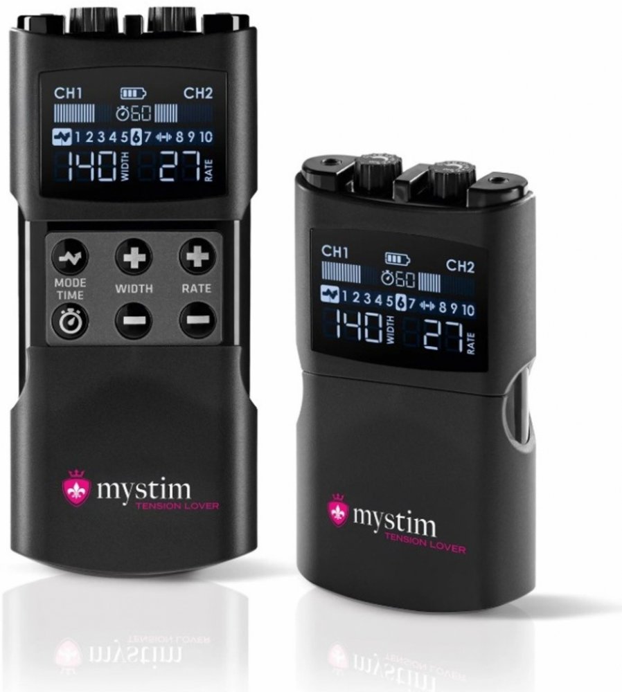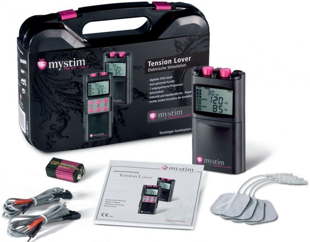 Zdroj v moderním designu elegantní černé barvy je vyroben z odolného ABS plastu prvotřídní kvality. Má dva potenciometry doplněné o 6 ovládacích tlačítek ukrytých pod krytkou, která brání nechtěné změně programu během vašeho dobrodružství. Na vrchní straně zdroje se pak nachází velký displej a na zadní nechybí praktický klips pro připnutí k opasku či oblečení. Dva dostatečně dlouhé kabely jsou propojitelné jak s ostatními pomůckami řady Mystim, tak s přiloženými elektrodami. Ty jsou tvořené nalepovacími měkkými polštářky, které lze opakovaně přikládat na pokožku.