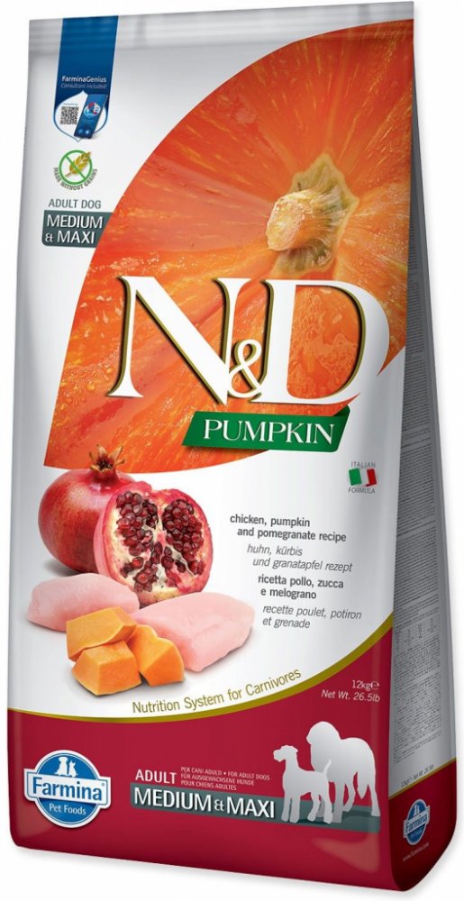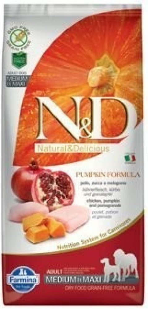 N&D Pumpkin Dog Adult Medium & Maxi Grain Free Chicken & Pomegranate 12 kg