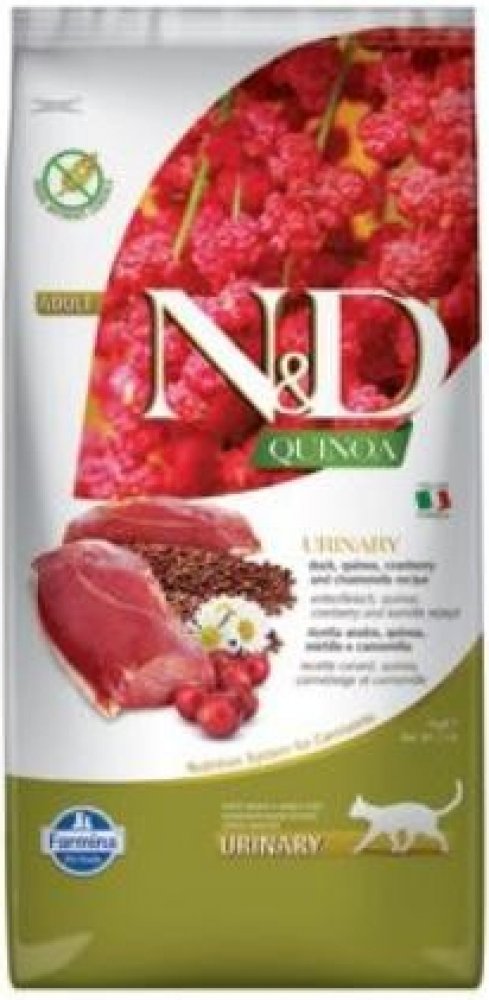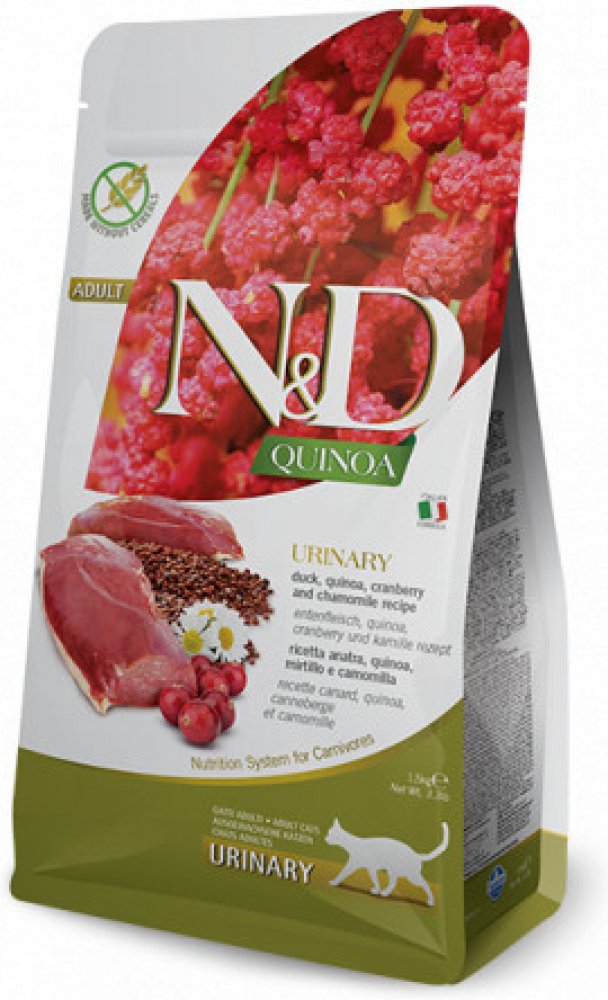 Problémy s močovým měchýřem a ledvinami nejsou u koček neobvyklé. Zvýšená tvorba krystalů v moči může vést k bolestivým onemocněním močových cest, například ke vzniku močových kamenů. Speciální krmivo, jako je Farmina N D Quinoa Urinary kachní maso, quinoa, brusinky heřmánek Adult, může pomoci těmto problémům předcházet a poskytnout úlevu v případě již existujícího onemocnění. Takto je možné podpořit také veterinární léčbu. Suché krmivo je speciálně přizpůsobeno potřebám koček se sklonem k problémům s močovým měchýřem a močovými cestami. Krmivo Urinary s vyváženou recepturou složenou z čerstvého kachního masa, quinoy, brusinek a heřmánku je určeno jako dietní krmivo. Je navrženo tak, aby pomáhalo ovlivňovat obsah minerálů a hodnotu pH moči a předcházel tak tvorbě nových močových kamenů. Krmivo Farmina pro kočky je vyrobeno bez obilovin a lepku. Neobsahuje také žádné geneticky modifikované organismy (GMO) a neobsahuje umělé konzervační látky. Farmina N D Quinoa Urinary kachní maso, quinoa, brusinky heřmánek Adult: Suché krmivo pro dospělé kočky Urinary Pro zvířata se sklonem k onemocnění močového měchýře a močových cest Proti močovým kamenům: speciální dietní receptura může pomoci zabránit tvorbě kamenů Vybrané ingredience: s čerstvým kachním masem, quinoou, brusinkami a heřmánkem 94 % živočišných bílkovin (podíl na celkovém obsahu bílkovin) Bez obilovin a lepku: vhodné pro zvířata citlivá na výživu Bez genetického inženýrství: vyrobeno bez geneticky modifikovaných organismů (GMO) Neobsahuje umělé konzervační látky