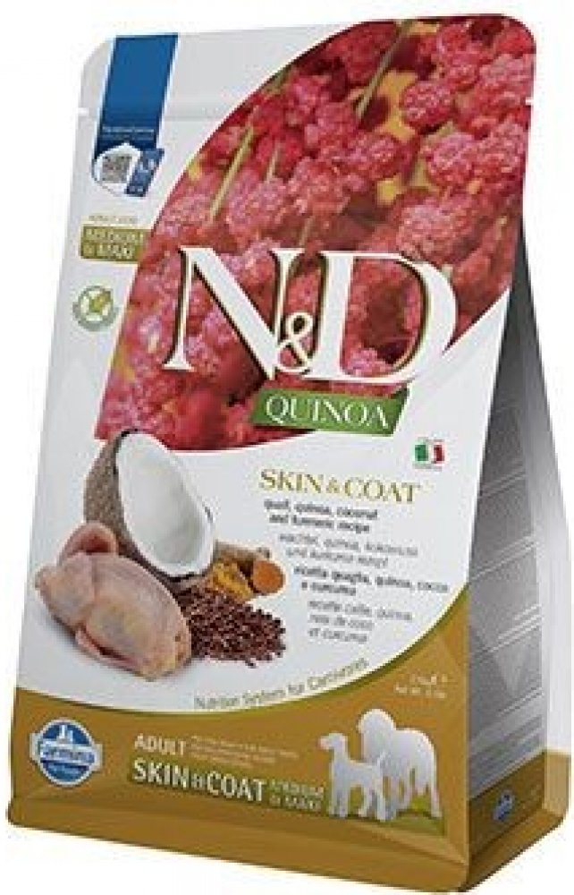 Farmina N&D Quinoa Skin & Coat je krmivo pro zvláštní účely výživy psů určené k podpoře omezení intolerance určitých komponentů a živin.