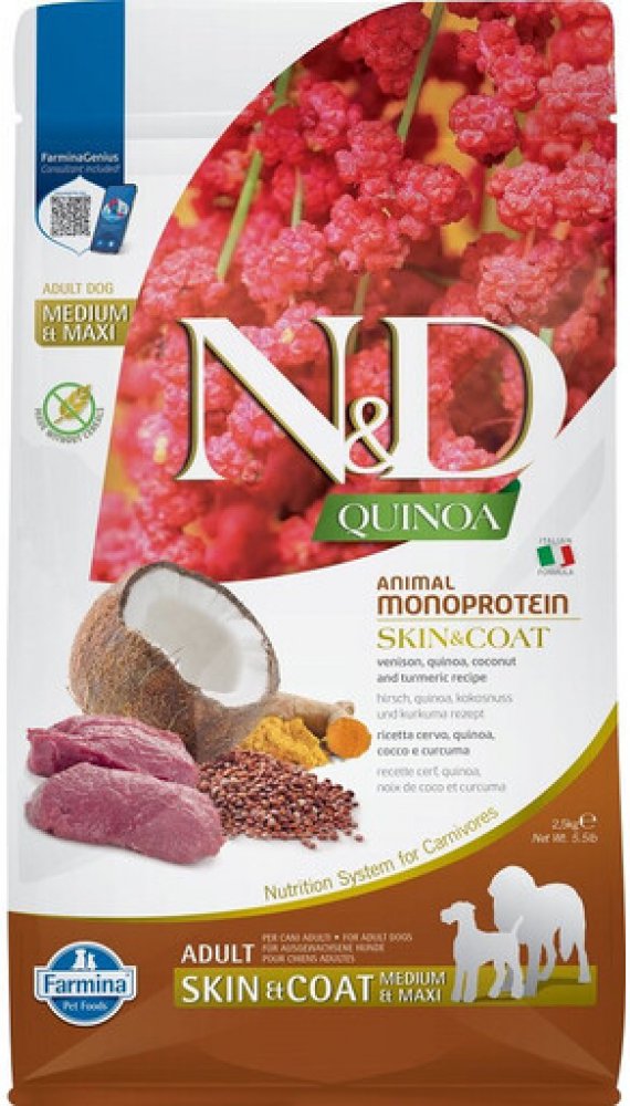 N&D Quinoa Dog Adult Medium & Maxi Skin & Coat Venison & Coconut 2,5 kg