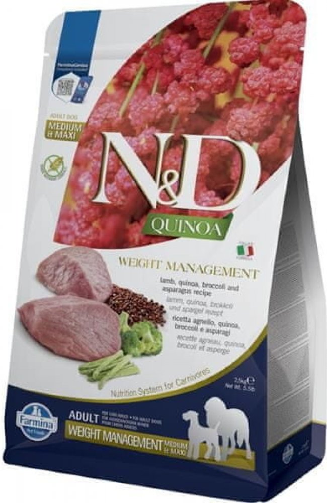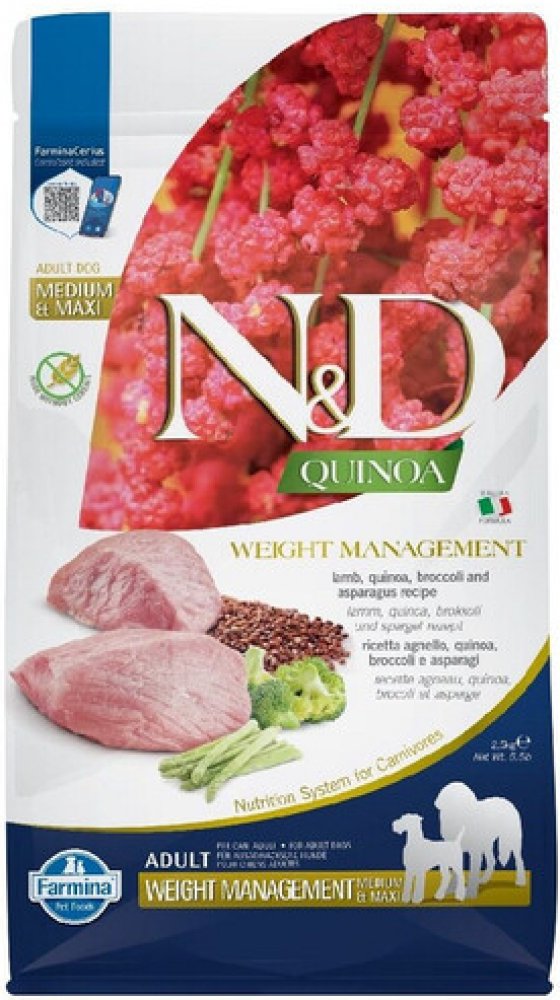 N&D Quinoa Dog Adult Medium & Maxi Weight Management Grain Free Lamb & Broccoli 2,5 kg