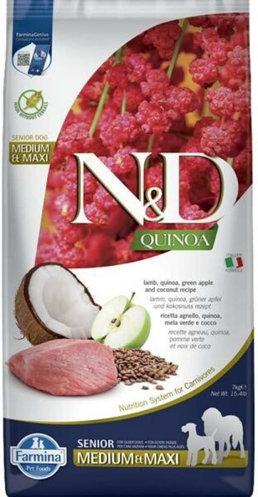 N&D Quinoa Dog Senior Lamb Green Apple and Coconut Medium & Maxi 7 kg