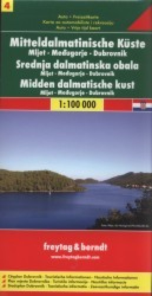 Automapy freytag berndt jsou dostupné pro mnoho zemí a regionů po celém světě. Kromě přehledného designu obsahují mapy ulic mnoho dalších informací, jako jsou podmínky ulic, památky, kempy a různé mapy centra měst. Rychlou orientaci umožňuje i rozsáhlý lokační index. Na zadní straně mapy také najdete nejdůležitější stručné informace o geografických charakteristikách a také přírodní a kulturní historii destinace (jazyky: němčina, angličtina, italština, chorvatština) mapa města Dubrovník, turistické informace, námořní informace
