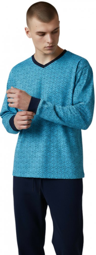 N-feel pánské nadměrné bavlněné pyžama s dlouhým rukávem HUGO tyrkysová