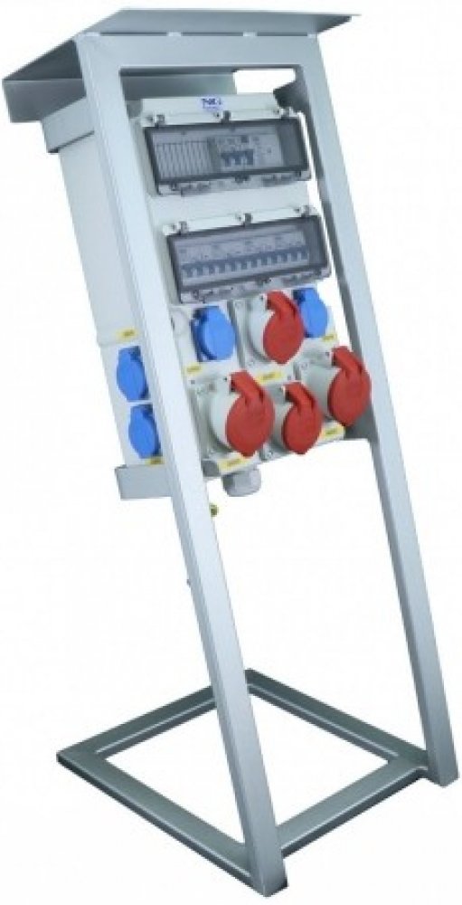 Složení zásuvek: 2x zás. 32A/400V/5p 2x zás. 16A/400V/5p 4x zás. 230V s ochr. kolíkem (česká) Jistění: 2x jistič 32A/3P/B 10 kA 2x jistič 16A/3P/C 10 kA 2x jistič 16A/1P/C 10 kA Proudový chránič 1x FI 63A/4P/30mA 10kA typ A Hlavní přednosti: připraveno k okamžitému použití přístroje se zkratovou odolností 10kA vysoce odolný a velmi stabilní podstavec rozměr: 380 x 1010 x 420mm pouzdra kombinací z nárazuvzdorného a UV stabilního polykarbonátu odolné vůči stárnutí a vysokým teplotám, chemicky odolné bezhalogenní, samozhášivé uzamykatelný vačkový vypínač zásuvky s bezšroubovou technologií QUICK CONNECT dodatečně je možné osadit elektroměr pro podružné měření Další údaje: DIN lišty: 26 (2 řady po 13) modulů Počet okének: 2 Podstavec: ocelový, žárově zinkovaný Provedení: Staveništní Použití: Přenosné samostatně stojící Madlo: NE Stupeň ochrany krytem: IP44 Jmenovitý proud: 63A Jmenovité napětí: 400V Teplotní rozsah použití: -25°C + 40°C V souladu s normou ČSN EN 61439-3 Vývodka: 1x MV-40 IP68 Max. průměr vodiče: 22-32mm Vačkový vypínač: 1x 63A/3P (uzamykatelný)
