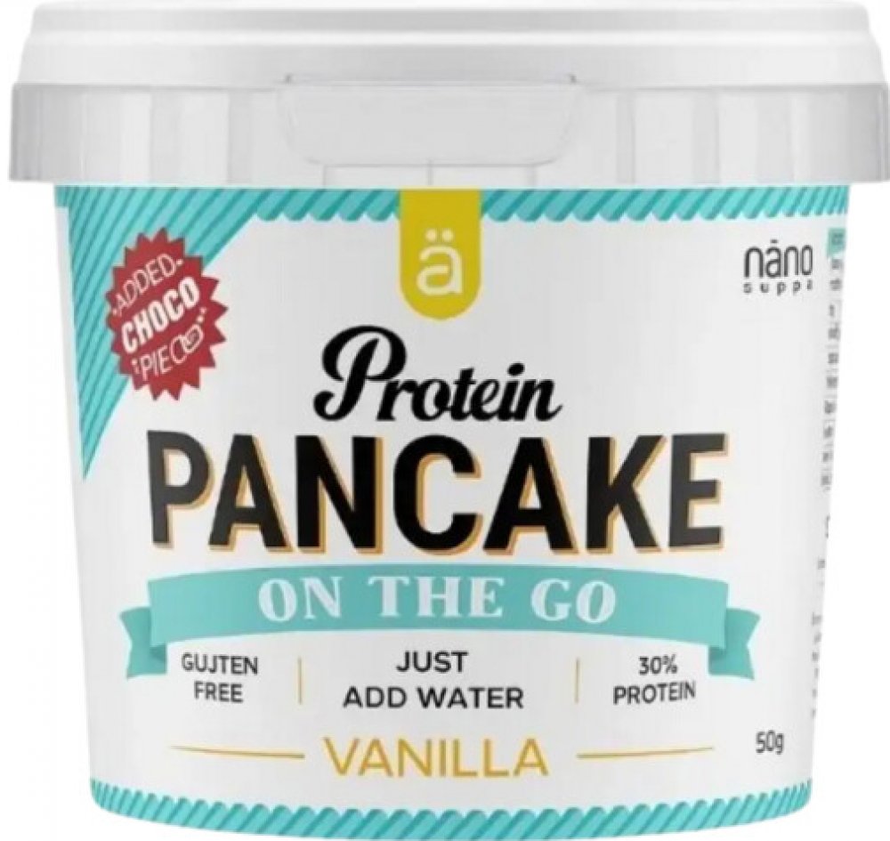 S Näno Supps Protein Pancake On The Go si vychutnáš nadýchané proteinové palačinky za pouhou 1 minutu. Praktický kelímek obsahuje předem odměřenou směs na palačinky s lahodnou vanilkovou a čokoládovou příchutí – ideální pro všechny, kteří hledají rychlou a bílkovinami nabitou svačinu.