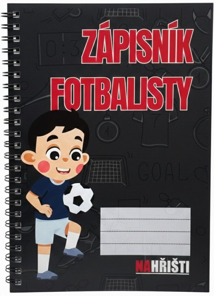 Zápisník fotbalisty - A5 je ideální společník pro mladé hráče, kteří chtějí mít své tréninky, zápasy a školní poznámky vždy po ruce. Prostorný formát A5 s kroužkovou vazbou na straně a rovnými rohy umožňuje pohodlné zapisování doma i ve škole. Pevná obálka z 350 g matné křídy chrání zápisky, zatímco čistý papír uvnitř nabízí dostatek prostoru pro poznámky, nákresy a nápady. Originální fotbalová grafika z kolekce NAHŘIŠTI dodává blokům hravý a motivující vzhled, který mladé fotbalistky baví a inspiruje je k zapisování každý den.