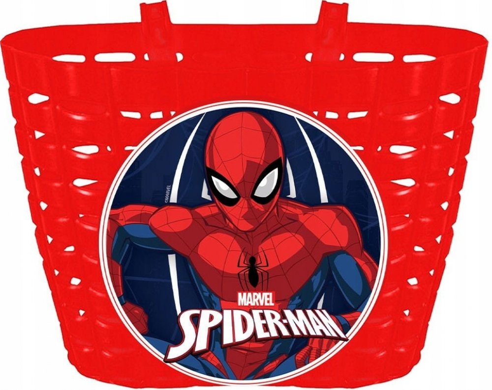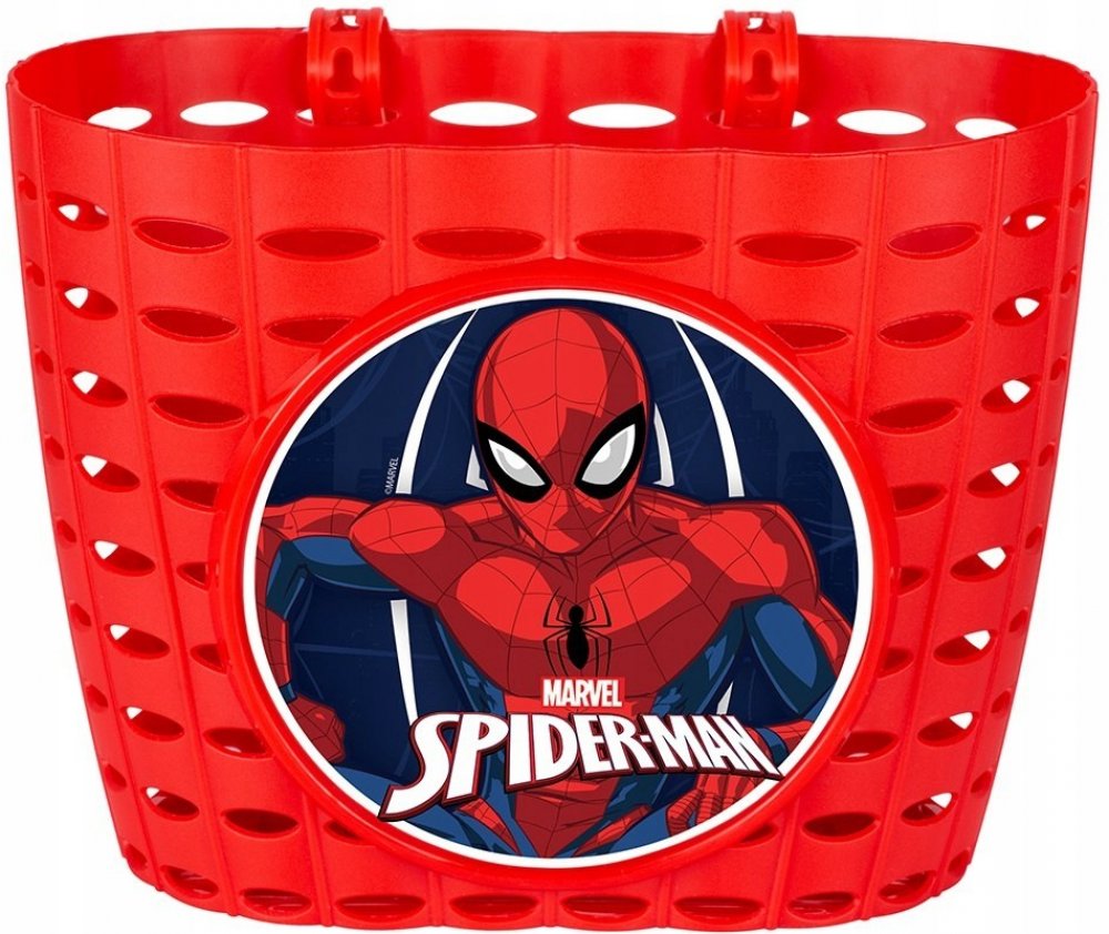 - Košíček na volant je vyroben z barevného plastu a zdoben nálepkou s oblíbenou postavou Spiderman