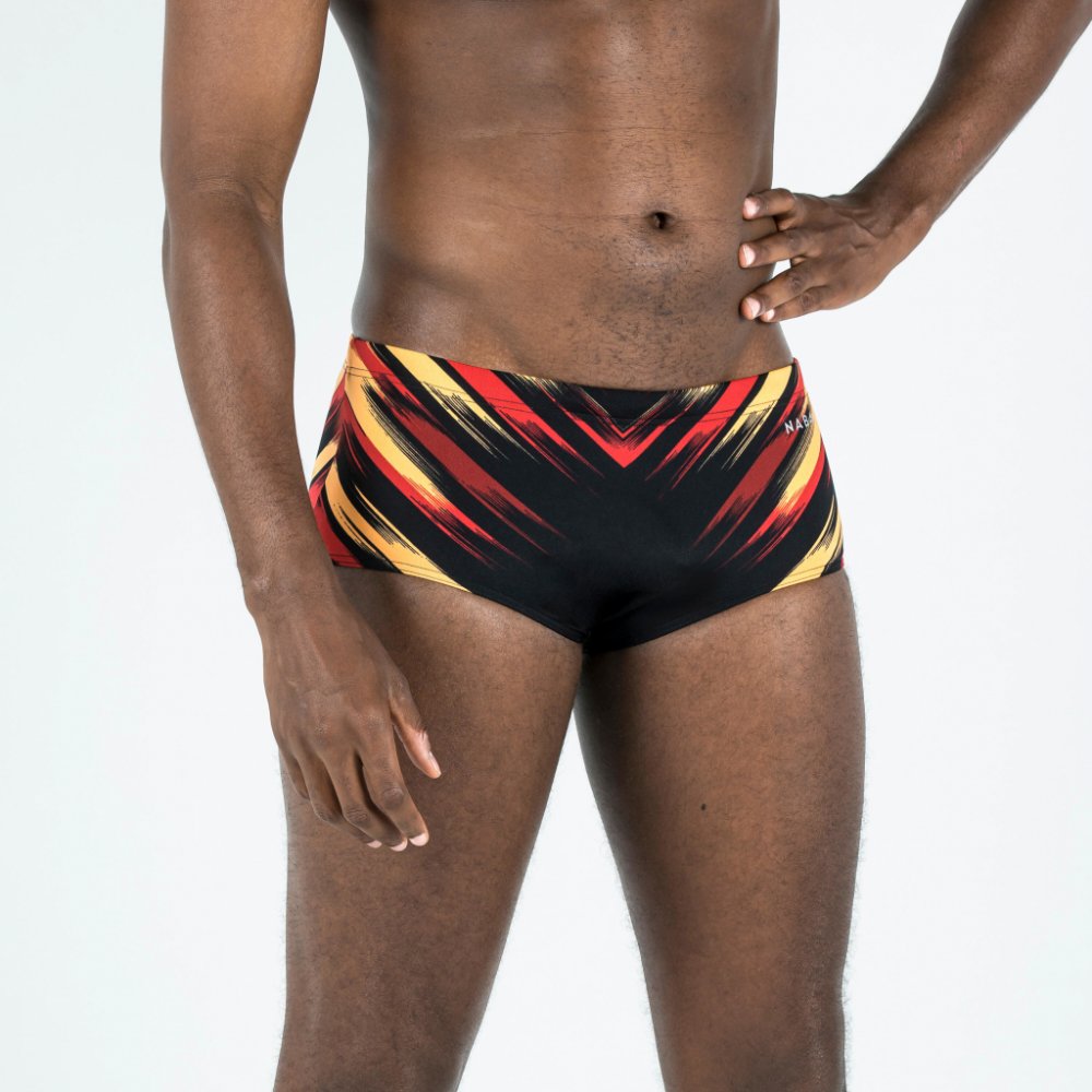 Slipový střih plavek umožňuje zcela volný pohyb nohou a dobré zpevnění. |Plavky jsou vyrobeny ze 100% polyesteru, z toho 45 % tvoří polyester PBT. Díky tomu jsou dostatečně pružné, aby se v nich pohodlně plavalo.