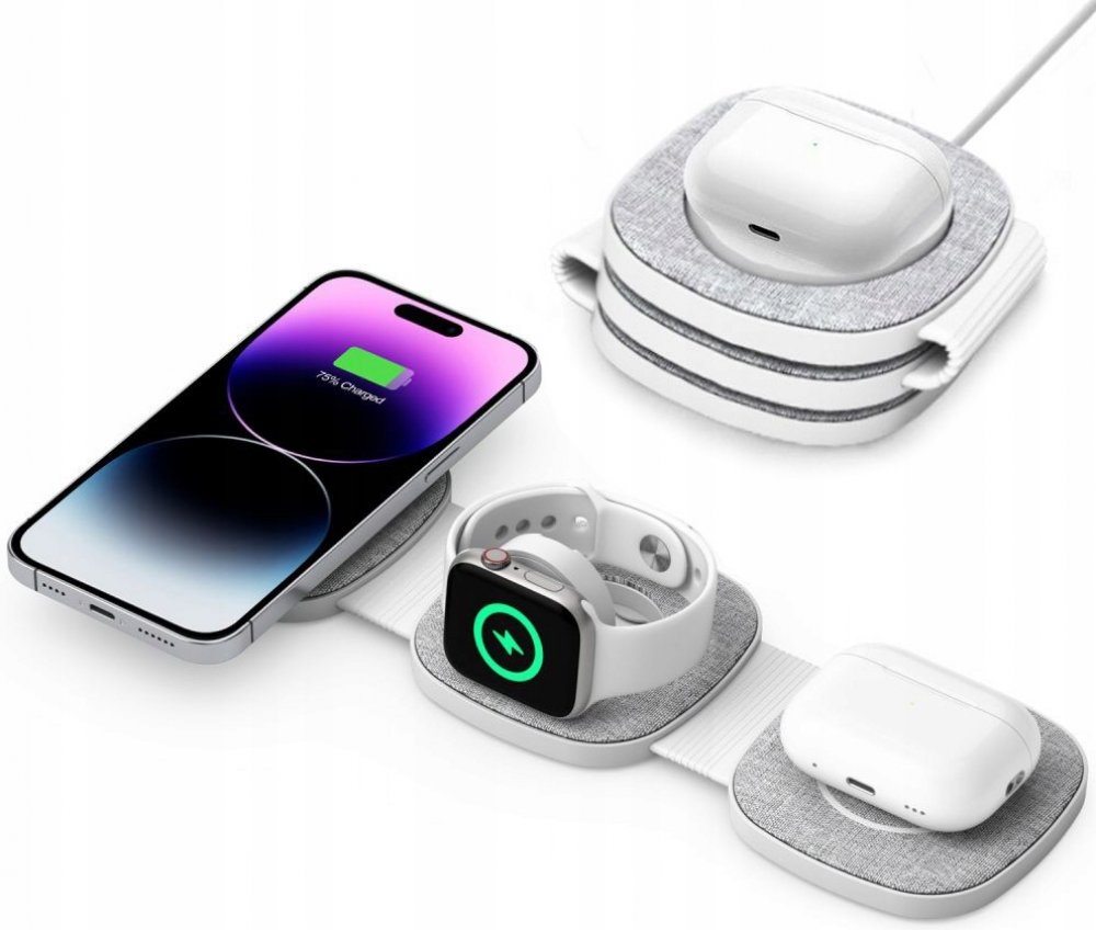 Tech-Protect QI15W-A32 je víceúčelová nabíječka kompatibilní se zařízeními značky Apple podporujícími funkci nabíjení Magsafe. Má také možnost bezdrátového nabíjení hodinek Apple Watch.