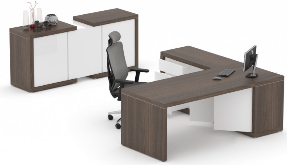 Tato sestava obsahuje: 1) Varianta stolu v délce 160cm, komody v L/P variantě a skříně 1x Manažerský opěrný stůl SOLID DLB16851 1x Komoda SOLID pro manažerský opěrný stůl DLKB173 (L/P variantu zvolte ve výběru variant výše) 1x Manažerská skříň SOLID DL21921 1) Varianta stolu v délce 180cm, komody v L/P variantě a skříně 1x Manažerský opěrný stůl SOLID DLB18851 1x Komoda SOLID pro manažerský opěrný stůl DLKB173 (L/P variantu zvolte ve výběru variant výše) 1x Manažerská skříň SOLID DL21921 1) Varianta stolu v délce 200cm, komody v L/P variantě a skříně 1x Manažerský opěrný stůl SOLID DLB20851 1x Komoda SOLID pro manažerský opěrný stůl DLKB173 (L/P variantu zvolte ve výběru variant výše) 1x Manažerská skříň SOLID DL21921 Manažerská sestava stolu s komodou a skříní SOLID Z19, volitelná délka stolu 160/180/200cm Manažerský nábytek SOLID . Základem jsou modely manžerských stolů a šatních skříní na ostrých, futuristických a pevných liniích. Je minimalistický, forma harmonizuje s nejvyšší kvalitou komponentů, jako jsou nábytkové desky s přírodní strukturou dřeva, vysoce lesklé akrylové desky, dvoustupňové ozdobné lemovky popřípadě chromové prvky. Kolekce SOLID je určena k aranžování manažerské kanceláře s nejvyšším standardem. Pracovní prostor manažera (archivy, konferenční stoly, odpočinkový prostor) tvoří ucelený celek. Vizuálně masivní manažerské stoly s charakteristickými nohami ve tvaru L, tvoří vynikající sestavu s dvoukonstrukčními skříněmi. Skříně a komody byly připravené v asi tuctu různých variant: uzavřené, částečně otevřené, uzavřené s výklopnými čely nebo se zásuvkami. Jsou k dispozici v mnoha velikostech pro snazší uspořádání každého manažerského prostoru. Stanou se ozdobou místa, kde jsou umístěny, a to jak díky své vynikající designové linii, tak i dostupným povrchovým úpravám. Kontrastní kombinace jednobarevných lamin s dřevěnými dekory zdůrazňují moderní design kolekce a umožňuje vám sladit barvy s designem vašeho interiéru. Manažerská sestava stolu s komodou a skříní SOLID Z19, volitelná délka stolu 160/180/200cm Manažerská sestava stolu s komodou a skříní SOLID Z19, volitelná délka stolu 160/180/200cm z kolekce SOLID představuje spojení luxusu a praktičnosti. Tento nábytek je vyroben z vysoce kvalitních materiálů, které zaručují dlouhou životnost a odolnost i při intenzivním používání. S kolekcí SOLID získáte reprezentativní kancelářský nábytek, který dodává prostorám prestiž a profesionální vzhled. Elegantní design, chromované prvky a precizní detaily jsou zárukou toho, že nábytek SOLID splní všechny vaše náročné požadavky.
