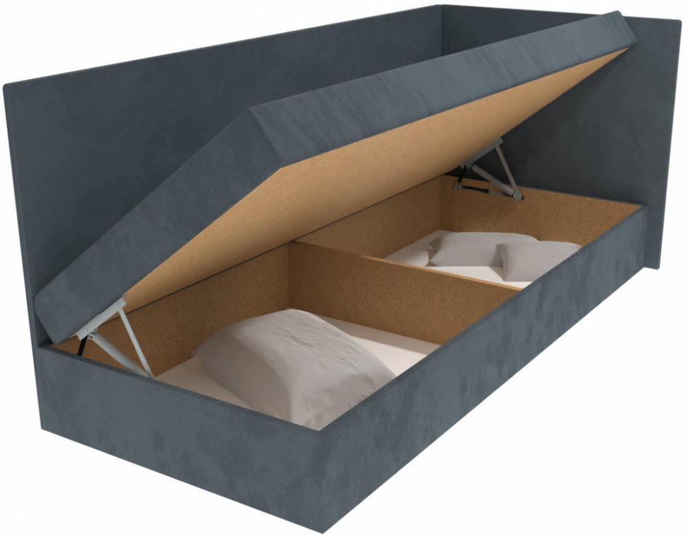 Kromě pohodlného ležení nabízí i bohatý úložný prostor, který se otevírá kvalitním pružinovým mechanismem. Umístíte do něj peřiny, polštáře a další věci.