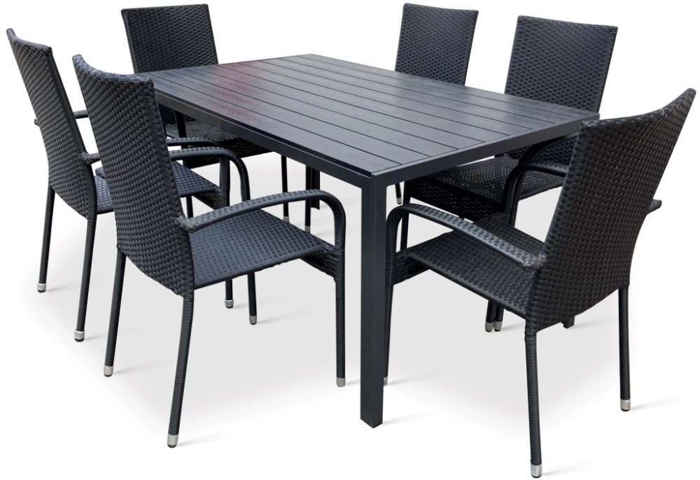 Nábytek Texim 40.3 kg jídelní sestavy kovové kov + umělý ratan 6 s obdélníkovým stolem snadná údržba stůl + 6 židlí 90 cm 150 cm 74 cm 56 cm 90 cm 130 kg
