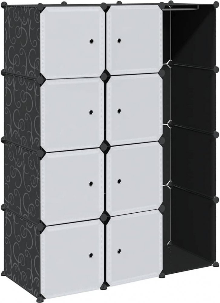 Tato modulární šatní skříň snadno zapadne do požadovaného prostředí - ať už se jedná o dětský pokoj, obývací část, chodbu nebo ložnici. Stylová a funkční.Šatní skříň je vyrobena z plastových prvků a pochromovaného ocelového drátu, díky čemuž se snadno čistí. Díky promyšlené konstrukci lze skříň snadno a rychle sestavit. Modulární konstrukce umožňuje různé kombinace, které se přizpůsobí dostupnému prostoru nebo vašim požadavkům.Vyvarujte se prosím přetížení polic a mějte na paměti, že plast je hořlavý.Barva: černá a bíláRozměry: 109 x 36,5 x 143 cmMateriál: plastSoučástí balení je návod k použití 9 přihrádek: 8 uzavřených přihrádek + 1 otevřená přihrádka na ramínka na oblečeníMax. Nosnost (celkem): 12 kgMax. Nosnost (na polici): 12 kg: 3 kgUPOZORNĚNÍ: Aby nedošlo k převrácení, musí být police připevněna ke stěně pomocí dodaného držáku.Právní dokumenty: Další informace o tom, jak chránit nábytek před převrácením, naleznete zde