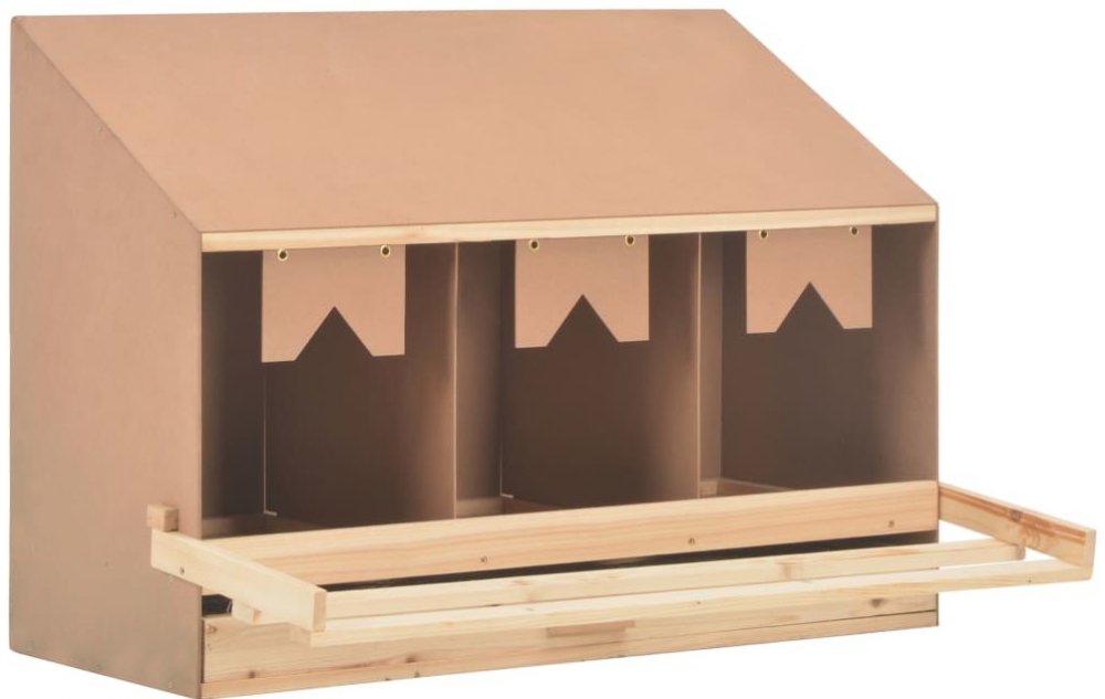 Toto snáškové hnízdo poskytne vašim slepicím pohodlné a bezpečné místo ke snášení vajec! Tři prostorné boxy jsou určené pro 3 velké slepice, které se zde mohou pohodlně uvelebit a snášet vejce. Vejce šetrně padají skrz otvory v podlaze do spodní zásuvky, což usnadňuje jejich sbírání. Vysouvací dno umožňuje jednoduché čištění. Hřady lze složit, abyste zabránili nočnímu hnízdění. Šikmá střecha slepi...