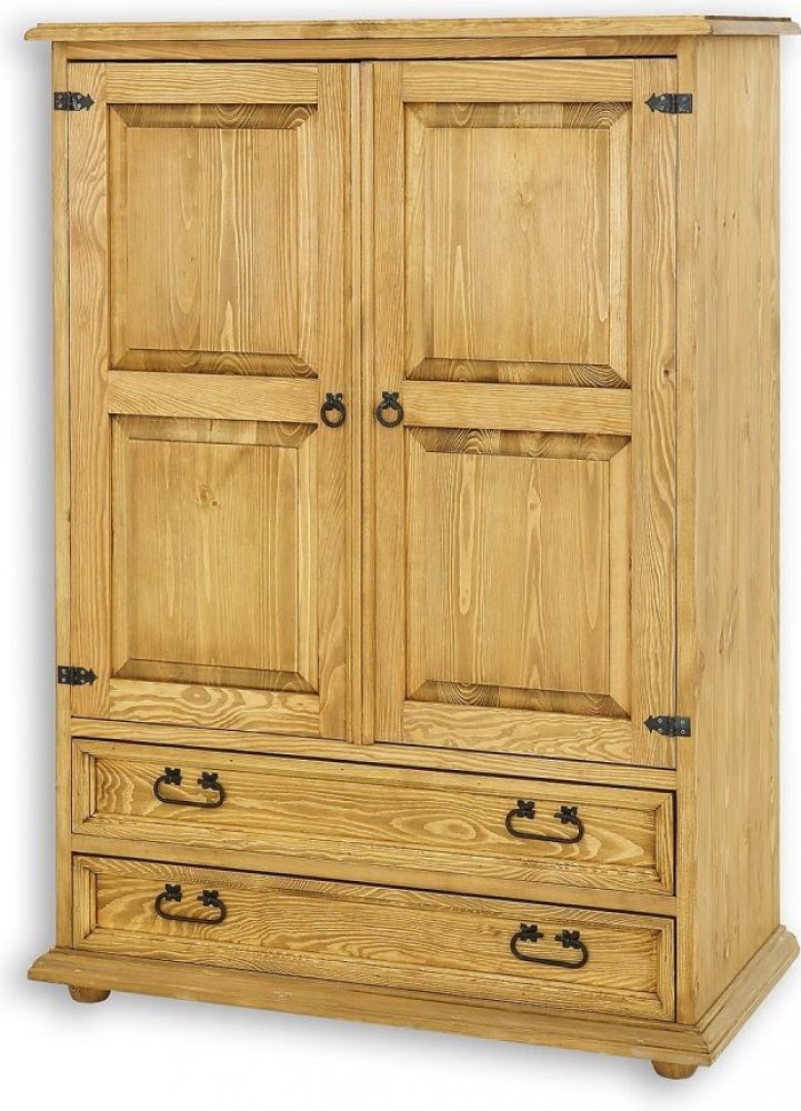 Komoda z kolekce Rustikal – vyrobená výhradně z masivního borového dřeva. Jeho povrchovou úpravou je ekologický přírodní včelí vosk, který majestátně zdůrazňuje kresbu borového dřeva. Proto je povrch hladký a sametový a velmi snadno se čistí. Skříň má pod horní deskou velkou skříň se šatní tyčí a dvě protorné zásuvky na dřevěných vodítkách, stojí na čtyřech kulatých nohách. Vnitřek skříně je navržen tak, aby byl co nejfunkčnější. Díky vybranému dřevu získává rustikální kus nábytku svůj osobitý charakter. Díky jedinečným rukojetím a závěsům, dodá dřevěný nábytek místnosti jedinečný a originální styl.